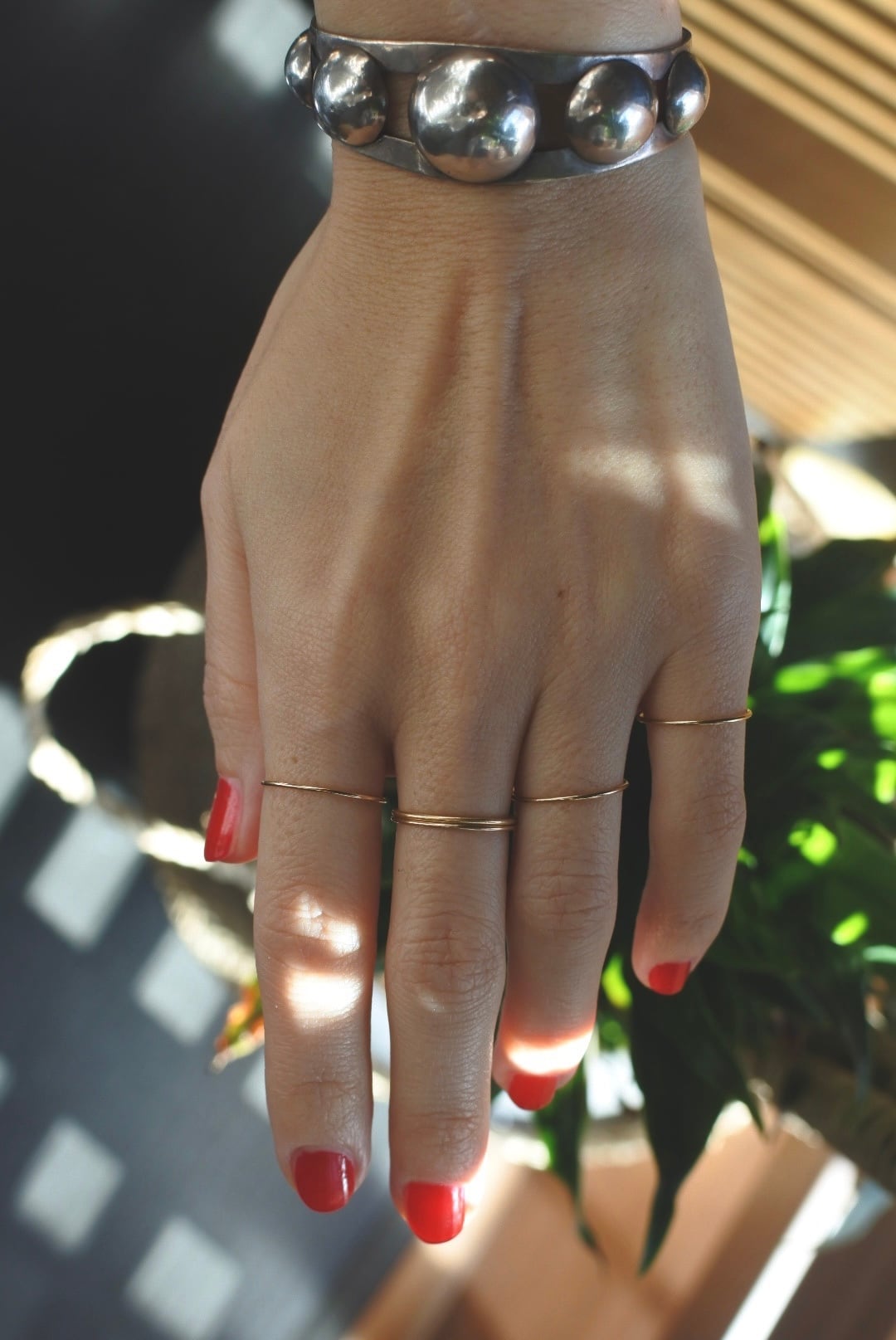 デザイナー自身が毎日着けている金の華奢なリングをサイズ違いでご用意しました。