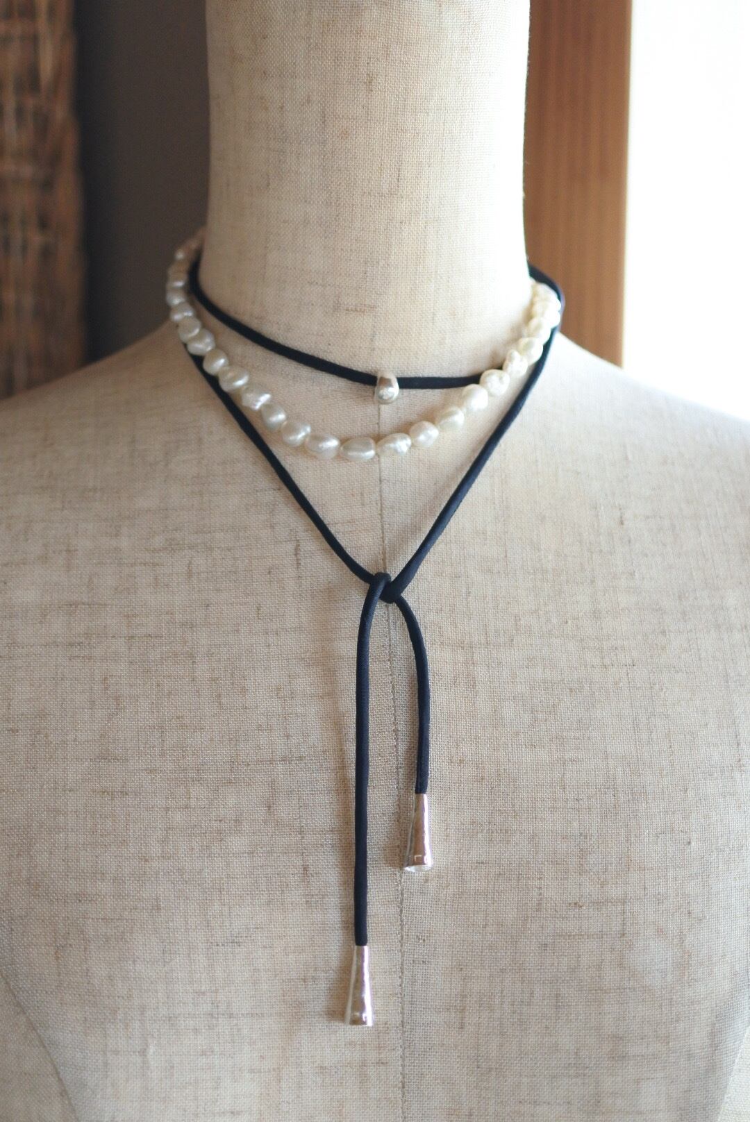 ●手作業で縫われたシルクのコードのチョーカー。